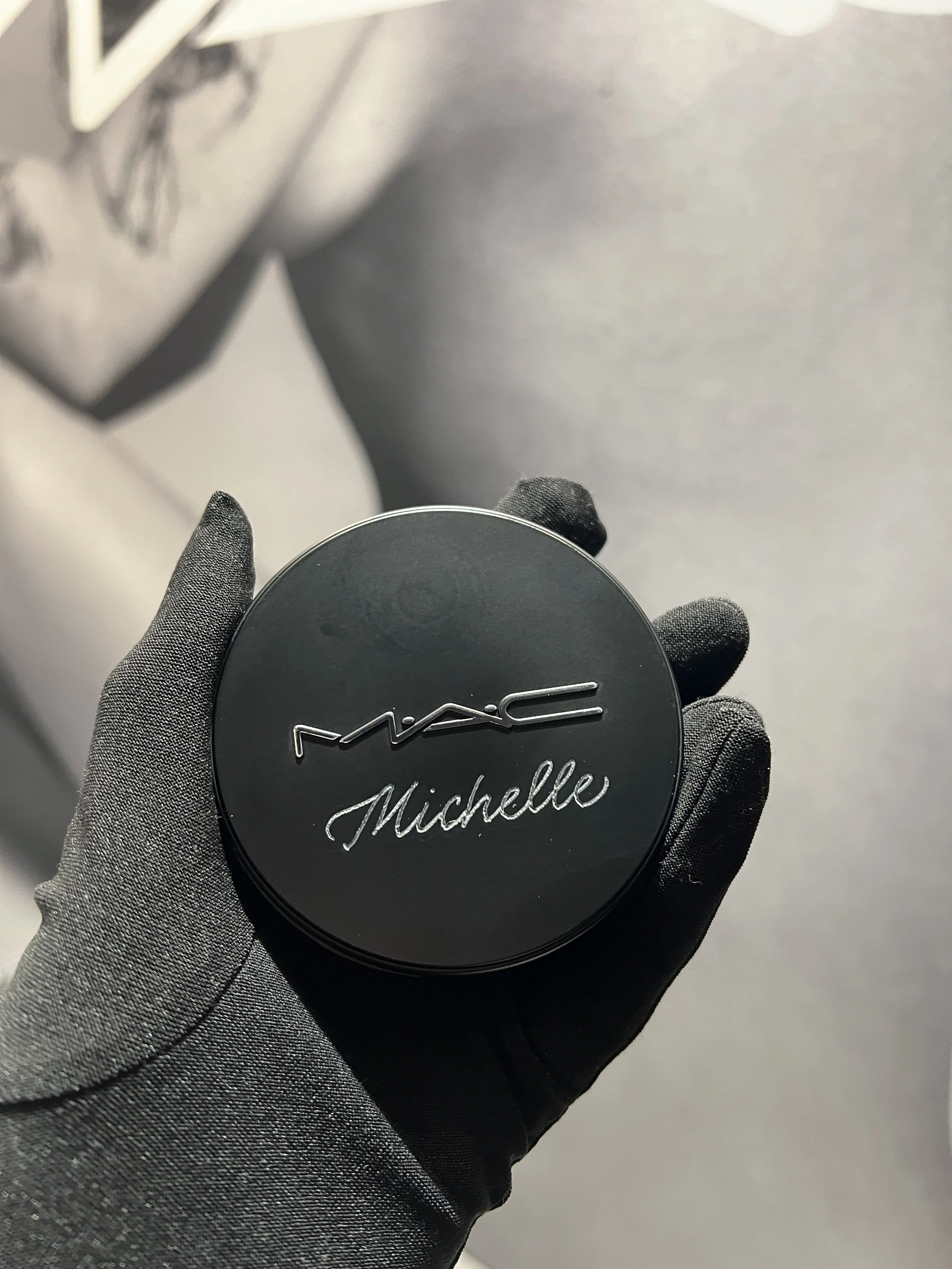 For my set up, I really only need a table and a chair, or a countertop and a bar stool. My hand engraving tool is cordless, so no power outlet is needed. I usually leave the table design up to the brand and event planner, but I can bring a small tabletop sign with me that explains the activation, if preferred. I can also provide engraving forms for guests to write down their personalization choice.